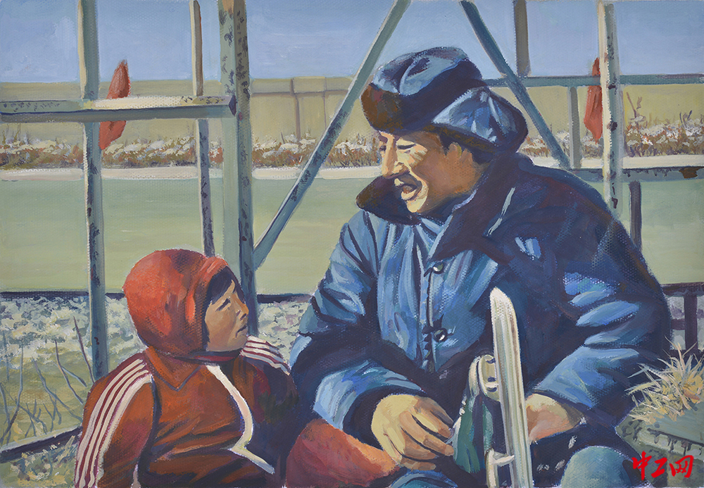 《备战》(水粉画,49cm×34cm),作者尚威,“冰雪情·冬奥梦”全国职工冰雪主题绘画活动入围奖作品