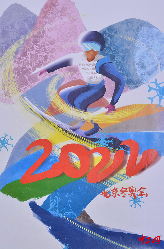 《舞动冰雪》(水彩电子画,27cm×41cm),作者苏晗,“冰雪情·冬奥梦”全国职工冰雪主题绘画活动入围奖作品