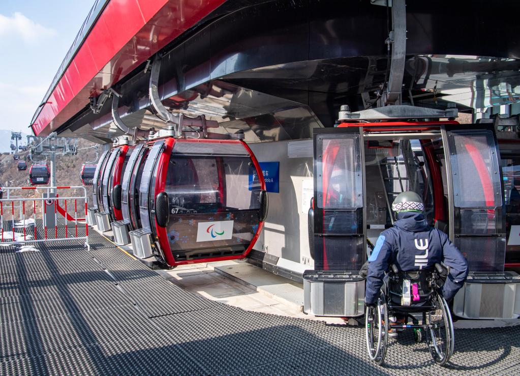 国家游泳中心看台无障碍座席及卫生间均比原来增加一倍;国家高山滑雪中心轿厢式缆车可供轮椅使用……