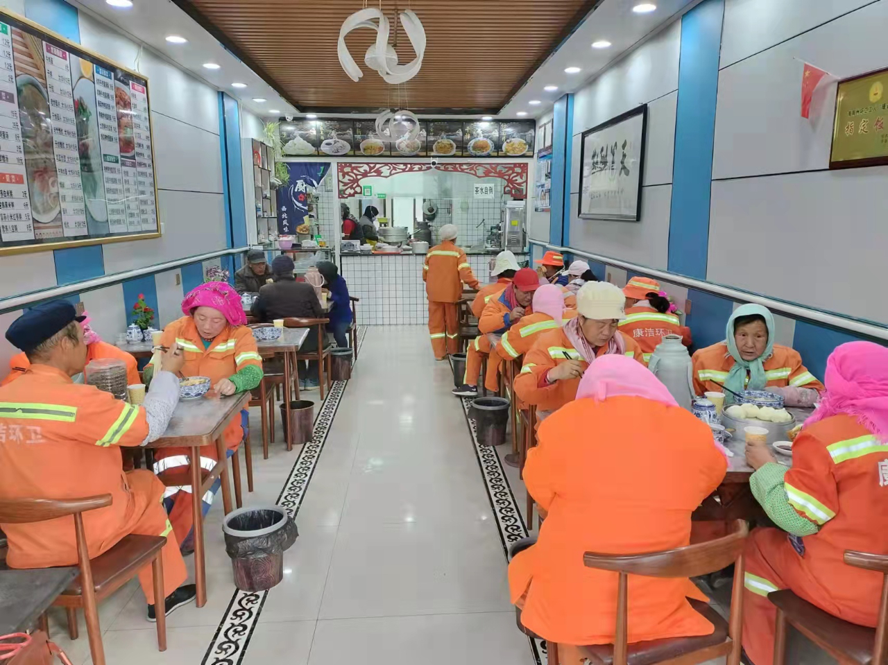 自深入推进党史学习教育以来,海南州委州政府坚持发扬民主,集思广益,在州“有事好商量”协商会议上对解决环卫工人“暖心早餐”事宜达成共识。2021年,贵德县总工会积极申请争取政府财政配套资金,按照“就近、方便、安全”的原则,根据环卫工人清晨作业时段和分布情况,选定拉宫牛肉面、童记小吃等5家有实力、信誉好、食品安全卫生有保障的餐饮店为早餐供应点,让全县环卫工人每天早上都能根据自己喜好吃到牛肉面、包子、油条、稀饭等免费早餐。