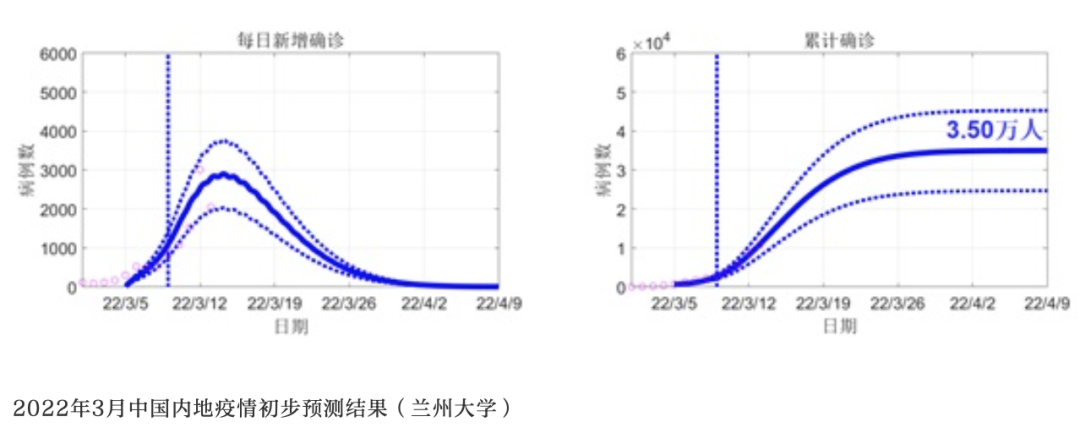 3月14日,兰州大学新冠肺炎疫情全球预测系统对我国内地本轮疫情作出了预测。初步预测结果显示,内地本轮疫情预计将于2022年4月初得到控制。