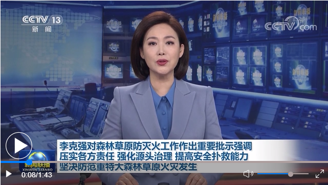 新华社北京3月17日电 中共中央政治局常委、国务院总理李克强日前对森林草原防灭火工作作出重要批示。批示指出:当前我国大部分地区陆续进入春季防火紧要期,必须不懈抓好森林草原防灭火这件事关人民群众生命财产安全和国家生态安全的大事。各地区各有关部门要坚持以习近平新时代中国特色社会主义思想为指导,认真贯彻党中央、国务院决策部署,坚持人民至上、生命至上,以更高标准、更严要求、更实举措做好森林草原防灭火工作。要层层压紧压实各方责任,盯紧看牢重点部位、关键区域和重要时段,加强联合会商、滚动研判,提高火险预警和应急响应的针对性、时效性。以底线思维强化源头治理,狠抓宣传警示教育、风险隐患整治和野外火源管控,补齐基础设施和消防力量短板。完善预案体系,科学布防力量,加强实战演练,提高专业指挥和安全扑救能力,做到打早、打小、打了,坚决防范重特大森林草原火灾发生,最大限度减少灾害损失。