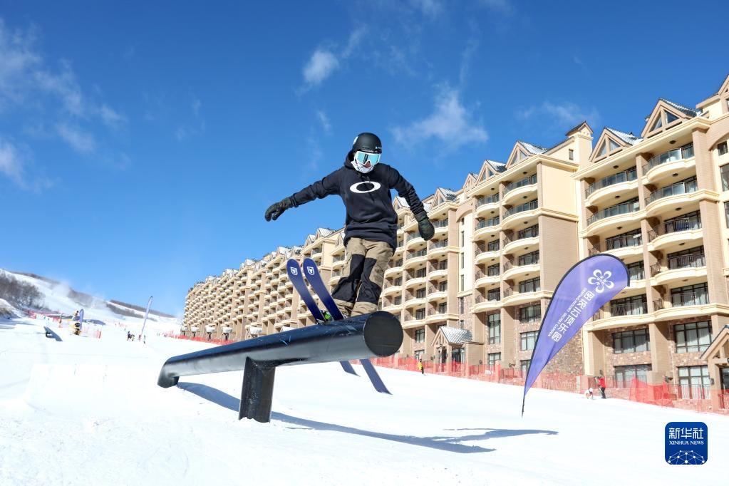一名滑雪爱好者在云顶滑雪公园滑雪(2019年12月11日摄)。