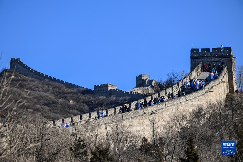这是北京2022年冬奥会火炬在八达岭长城传递(2022年2月3日摄)。