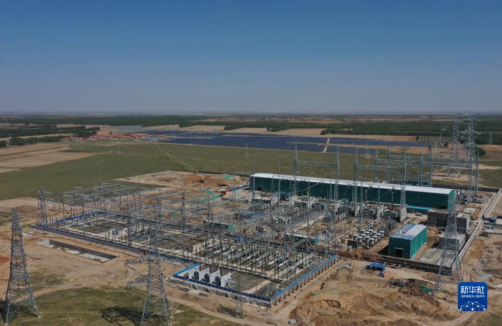 这是张家口市张北1000千伏特高压变电站建设工地(无人机照片,2020年6月3日摄)。