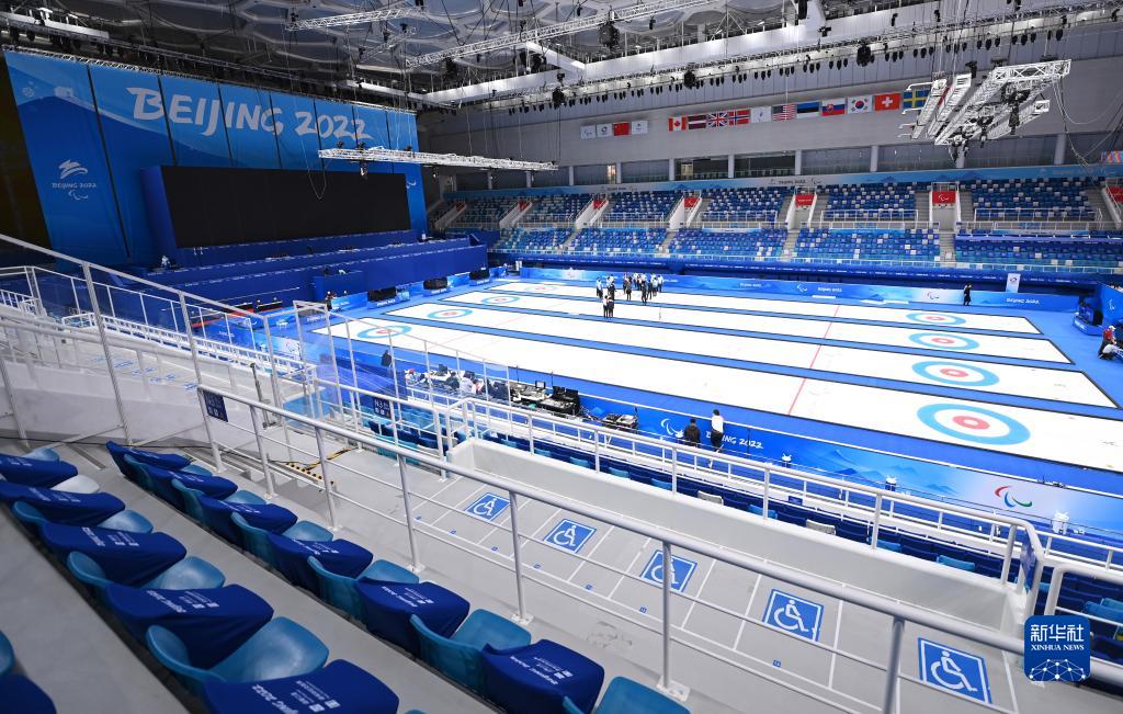 这是在国家游泳中心“冰立方”内拍摄的无障碍看台(2022年3月1日摄)。