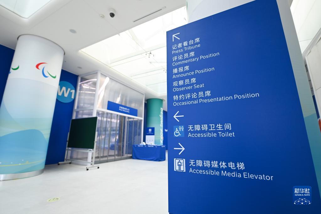 这是在国家游泳中心“冰立方”内拍摄的一处指示标牌(2022年3月1日摄)。