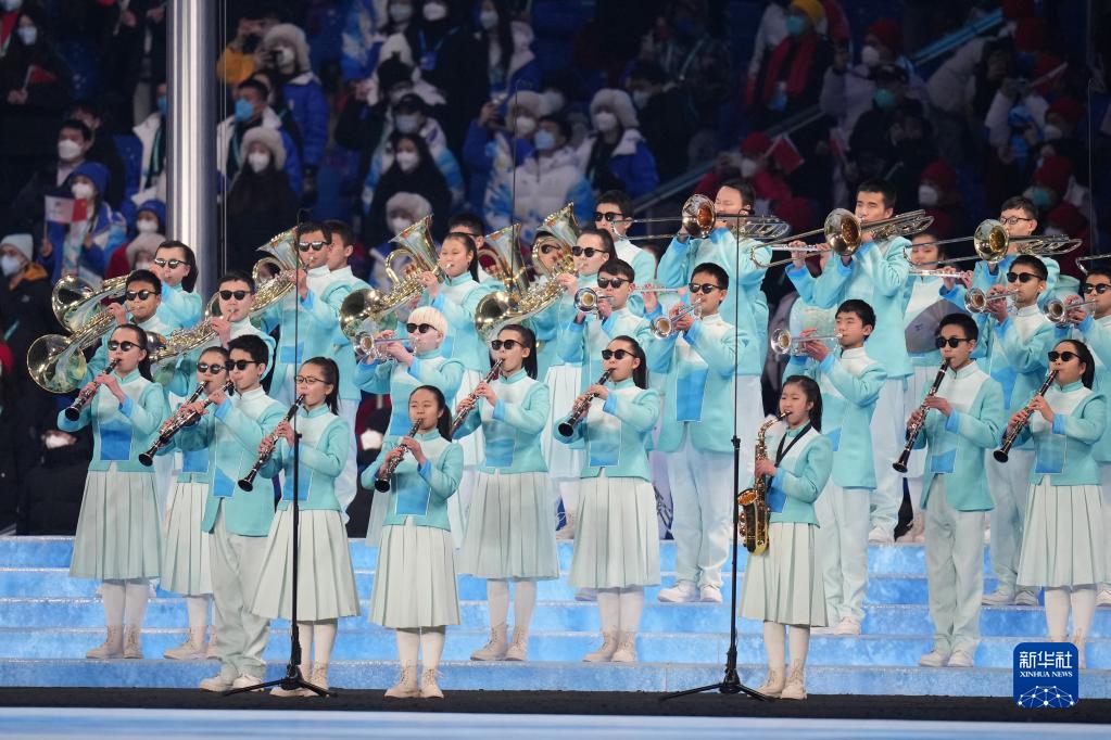 在北京2022年冬残奥会开幕式上,重庆市特殊教育中心扬帆管乐团参演团队演奏国际残奥委会会歌(2022年3月4日摄)。