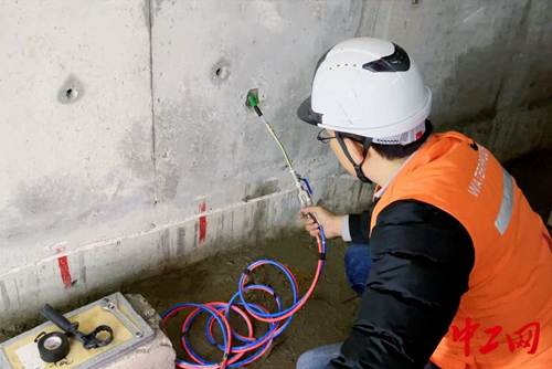 工人正在使用注浆管