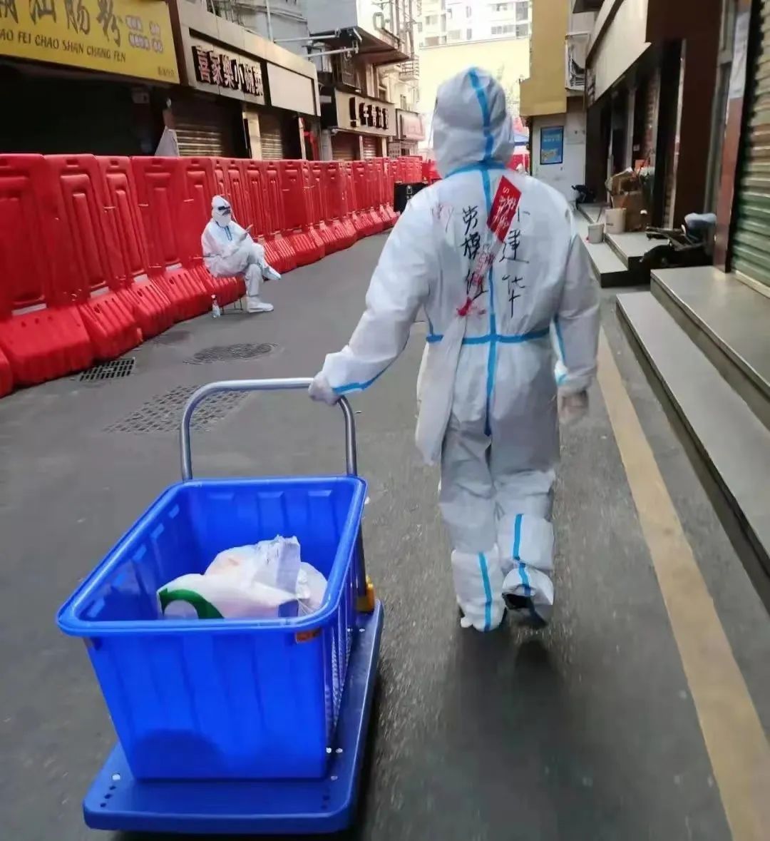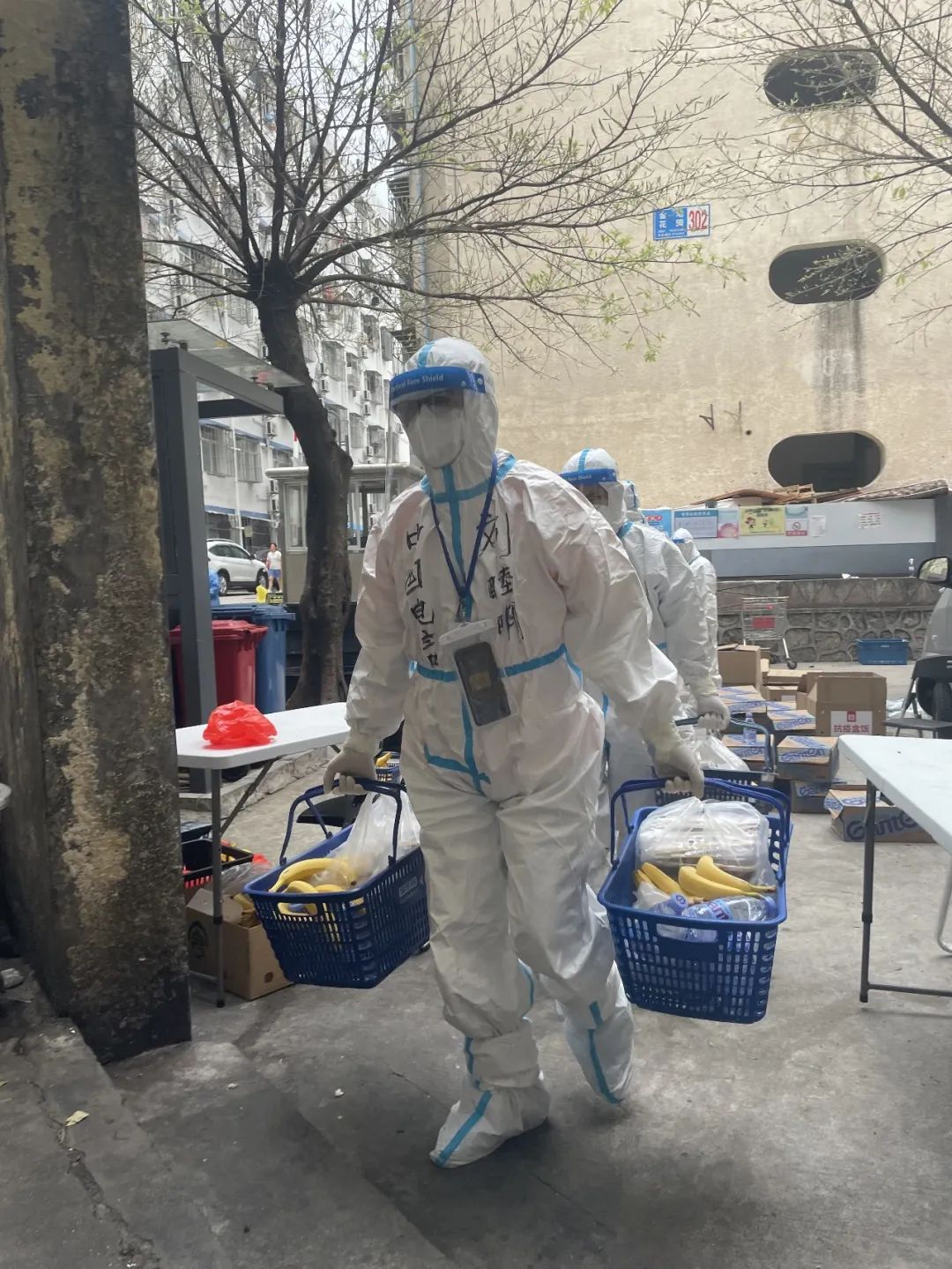 在管控区里,杨海润和另外一位队员一起负责120多户居民的生活物资运送工作,每天下午4点到晚上10点期间,居民所需要的生活物资一到达,他们就要立马进行配送。刚开始的几天,一趟趟地上下楼梯让他的双腿累的颤抖,现在似乎已经习惯了,奔跑、爬楼的时候,双腿也不再发出“抗议”。