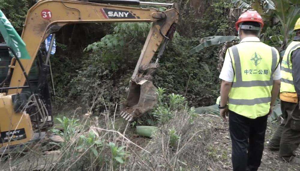 中交二公局七公司副总经理、平岑项目公司书记郭兆亮:我们初步的计划是今天晚上最多到8点左右,我们就把这条便道打通。