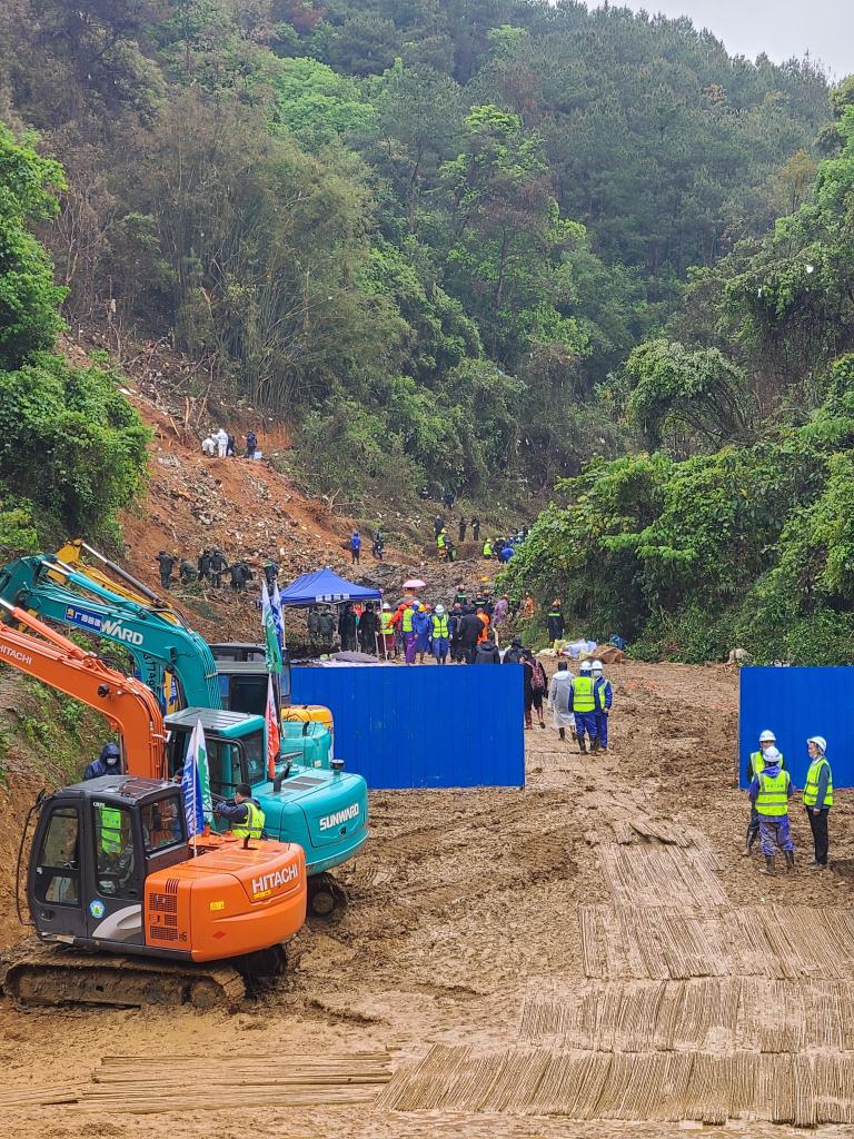 23日上午,受连续降温降雨天气影响,事故现场湿滑泥泞,对搜寻工作造成一定影响。22日紧急开辟的一条通往事故核心现场的道路已经修通。为方便雨天行走,工作人员在路上铺设了一条竹编小道。记者现场了解到,工作人员计划采取更多措施,以减轻降雨的影响。