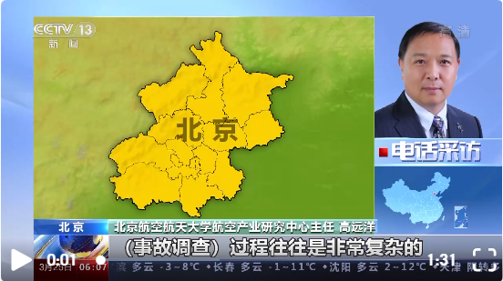 北京航空航天大学航空产业研究中心主任 高远洋:(事故调查)过程往往是非常复杂的,尤其是如果说我们得不到足够的有效的数据或信息情况下,事故调查可能会非常困难,而且可能会需要持续很长的时间。