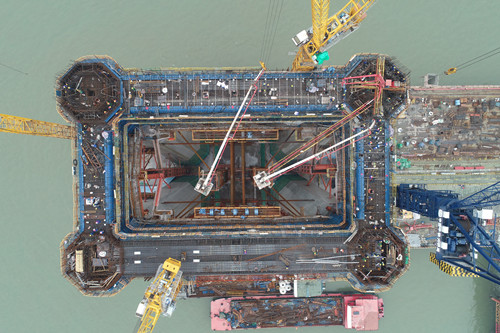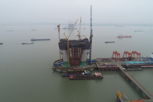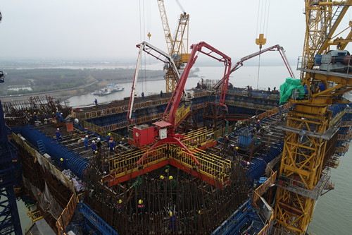 世界最大跨度公铁两用斜拉桥主塔下横梁开始浇筑