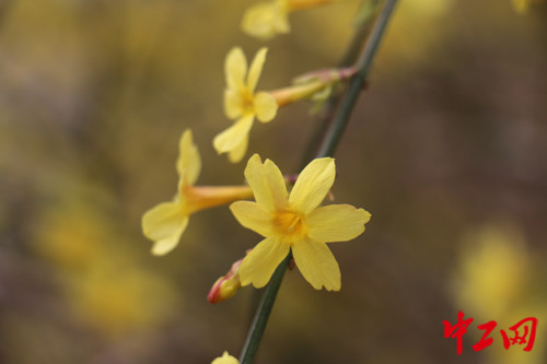 “春天的使者”迎春花,鹅黄色的花朵像小喇叭。中工网 刘云摄