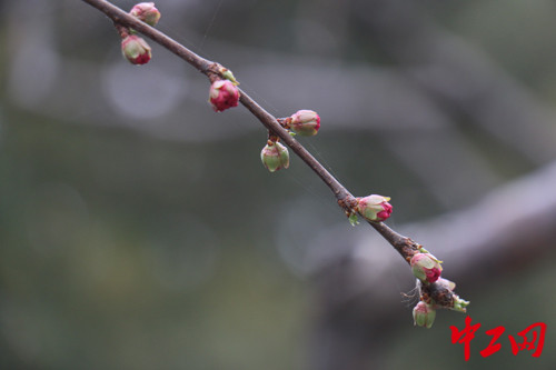 桃树枝头长满了圆鼓鼓的花骨朵。中工网 刘云摄