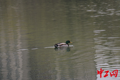 春江水暖鸭先知,一只绿头鸭悠闲地在水面寻找食物。中工网 刘云摄