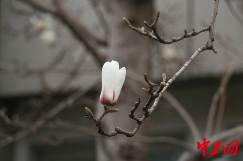 含苞待放的白色玉兰花带给我们春天的气息和问候。中工网 刘云摄