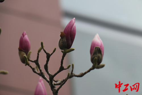 含苞待放的紫色玉兰花带给我们春天的气息和问候。中工网 刘云摄