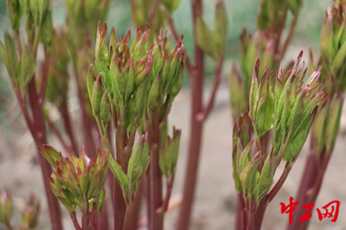 芍药的叶子翠绿欲滴,一派欣欣向荣的景象。中工网 刘云摄