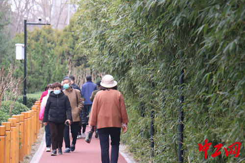 北滨河公园内,人们纷纷走出家门,走在公园的小道上,感受春天的气息。中工网 刘云摄
