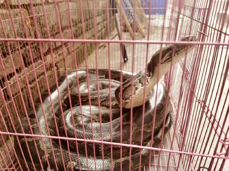 经鉴定,该蟒为我国蛇类体型的天花板——缅甸蟒,全长2.8米,重达15.8千克,民警随后将其移交西双版纳州野生动物救助中心。