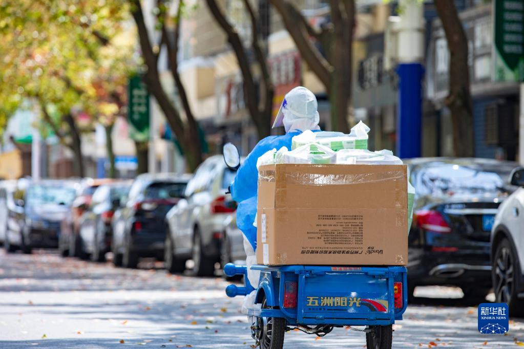 近日来,为配合全市核酸筛查工作,上海的部分居民小区实施封控管理。在这些小区内活跃着许多由居民组成的志愿者服务队伍,他们的日常工作包括派发生活物资、接收派送居民快递外卖和辅助核酸筛查等,助力疫情防控。新华社记者 方喆 摄