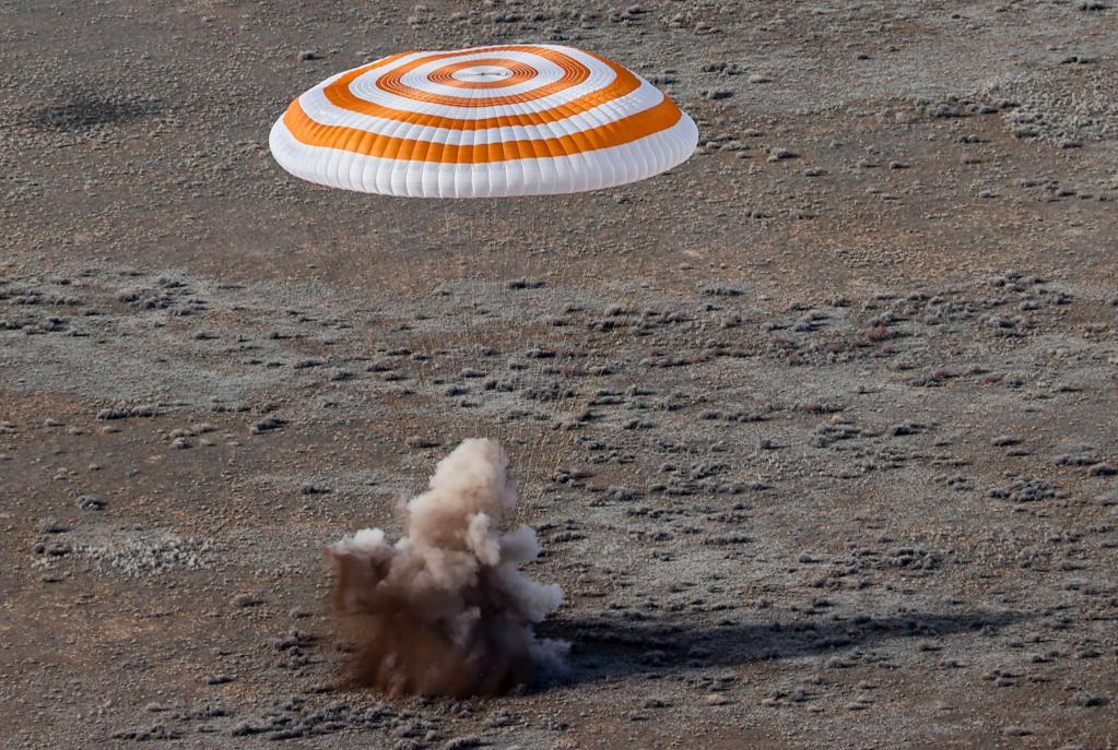 3月30日,载有美俄宇航员的飞船返回舱降落在哈萨克斯坦杰兹卡兹甘附近。美国宇航员马克·范德·海与俄罗斯宇航员彼得·杜布罗夫和安东·什卡普列罗夫30日乘坐俄罗斯“联盟”飞船从国际空间站返回地球。新华社/塔斯社