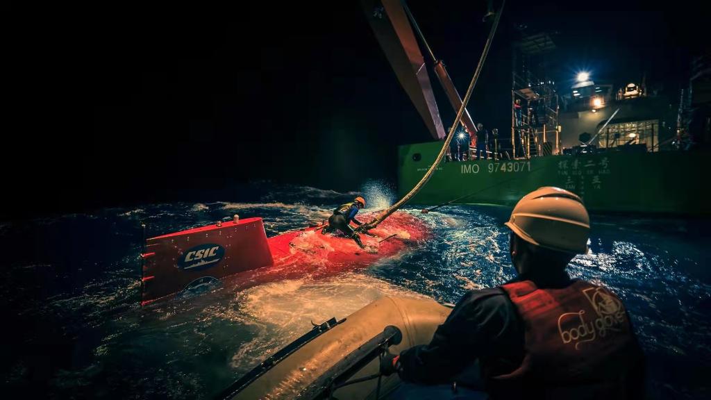 图为深海科考人员在马里亚纳海沟开展科考活动。新华社记者陈凯姿摄