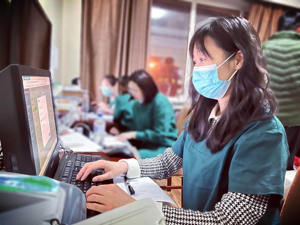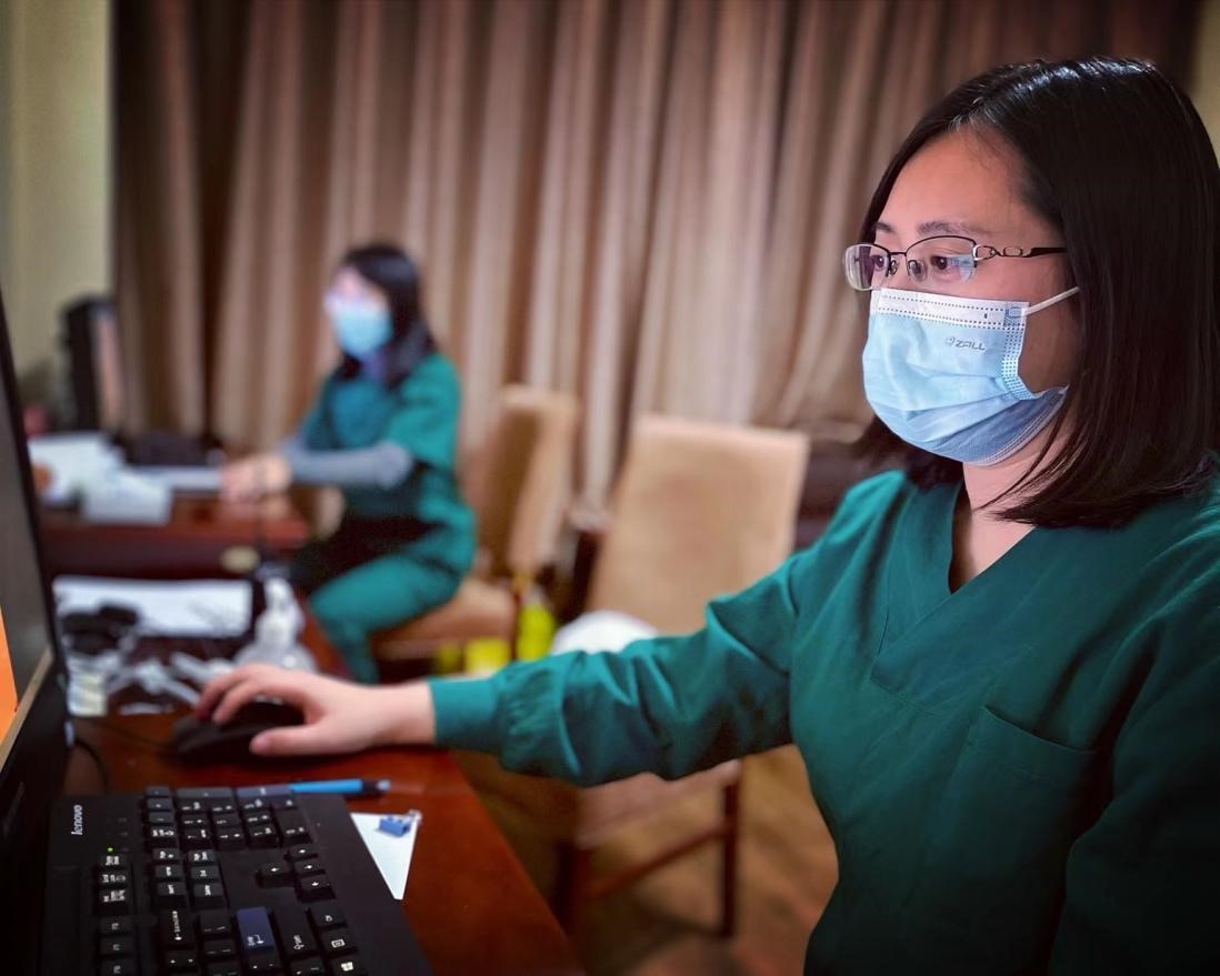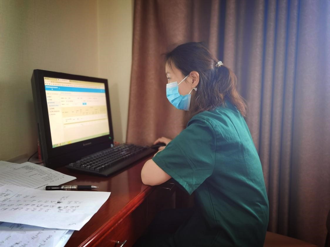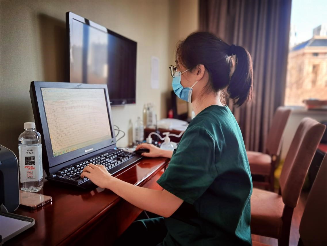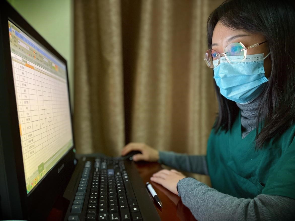 王霞是眼科的一名护士,这是她第一次接触数据统计工作,从最初因陌生而感觉无所适到很快变得专业娴熟,她付出了巨大努力。3月6日,吉大二院核酸检测医疗队到珲春工作的第6天,正是王霞在检测队数据组的值班日,她不停忙碌着,电脑屏幕的光刺得她眼睛酸疼,就在这时,家人来电话告诉她,长春也发现了新冠病毒阳性患者,不巧的是5岁的女儿正在发烧,让人担忧,但她却无暇顾及。当稍微能抽出一点空时,王霞立刻拨通家里电话,询问女儿是否退烧,还难受么,但随着同事的一声“霞姐,这边……”又将她从电话中召了回来,继续全身心投入到工作中。