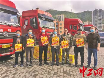 疫情期间,深圳市盐田区总工会先后到德邦快递、顺丰快递等企业开展情暖货车司机送温暖活动,为货车司机送去了1125份慰问品。工人日报-中工网记者刘友婷 通讯员 张密 摄