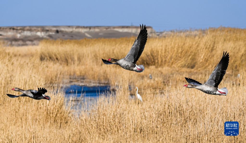 近日,随着天气转暖,位于内蒙古阿拉善盟额济纳旗的居延海湿地迎来大批候鸟。随着居延海水域面积的逐步稳定,从这里迁徙过境的候鸟种类和数量不断增加。