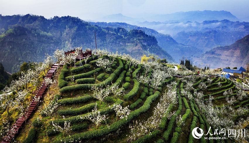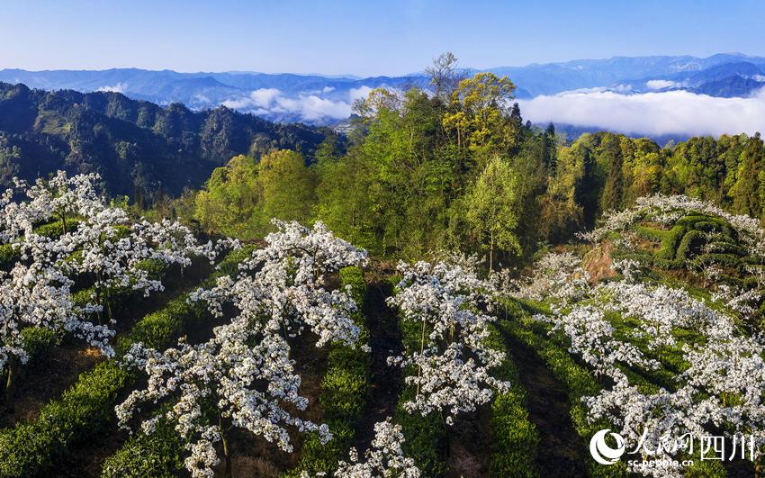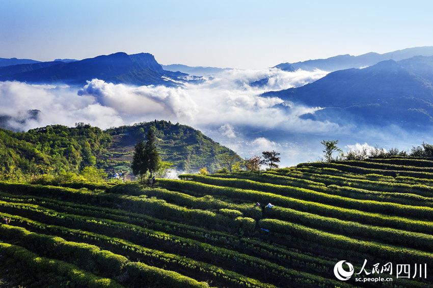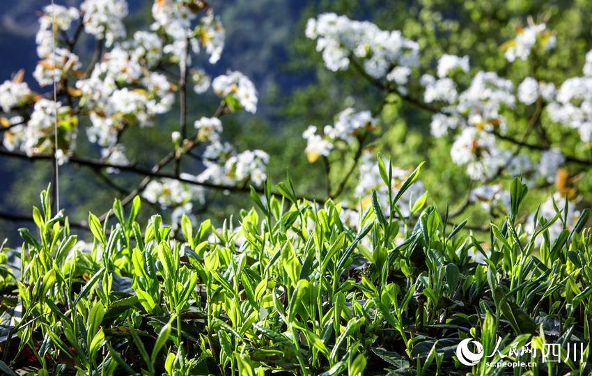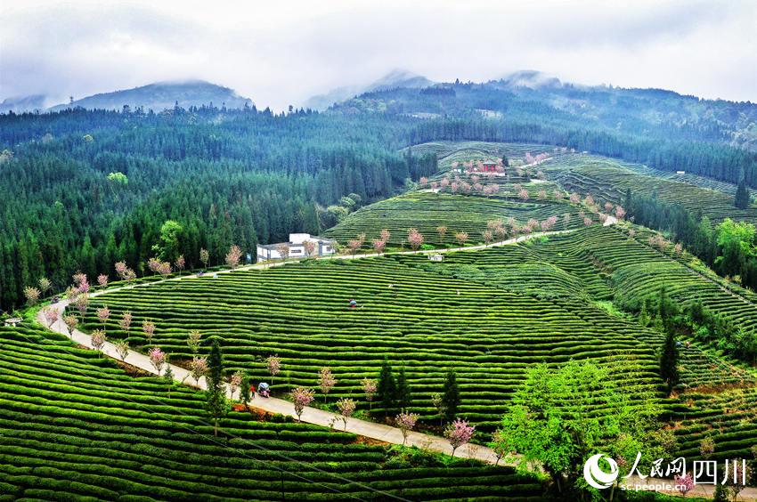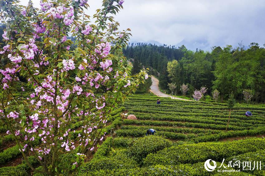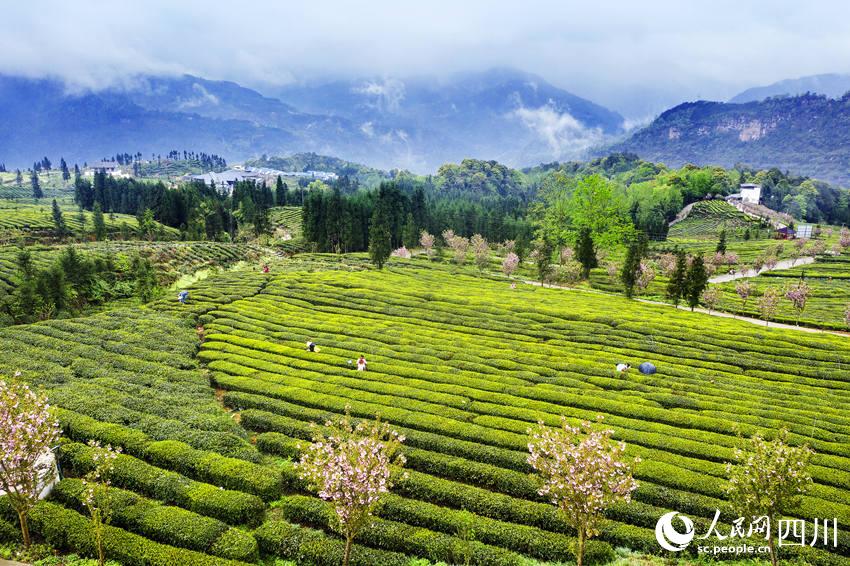 人民网成都4月15日电 自古高山出好茶。四川省乐山市马边彝族自治县福来村的高山茶基地海拔900米—1300米,这里群山环绕,四季分明,常年云雾缭绕。4月,茶香溢满园,彝族采茶人穿梭在茶园的各个角落,抢摘鲜嫩饱满的叶芽。2400亩茶园嵌于山间,给连片的大山增添了一抹青绿,在盛开的樱花、梨花的点缀下,更显勃勃生机。(彭茜、杨骥儒)