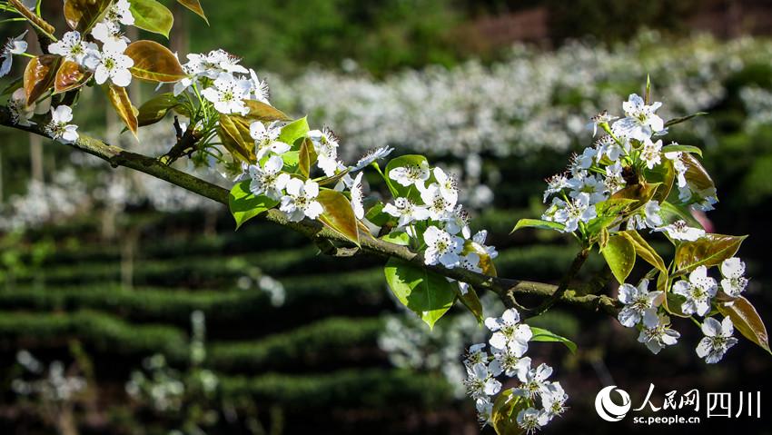 梨花盛开,扮靓茶园。何为摄