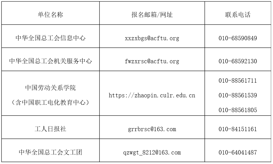 (2)中国劳动关系学院(含中国职工电化教育中心)和工人日报社所有岗位: