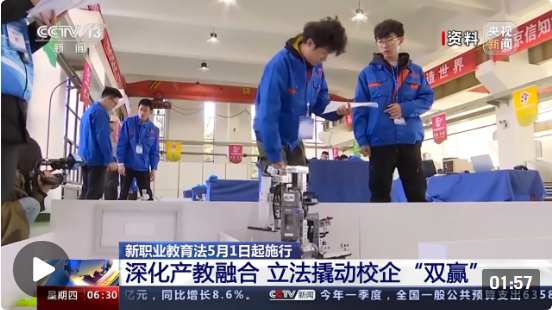 昨天,十三届全国人大常委会第三十四次会议表决通过了新修订的职业教育法。这是该法律制定近26年来的首次修订,从提升职业教育认可度、深化产教融合、校企合作,完善职业教育保障制度和措施等方面,立法推动职业教育高质量发展。新修订的职业教育法将于5月1日起施行。新职业教育法有何亮点,将给职业教育带来哪些改变呢?