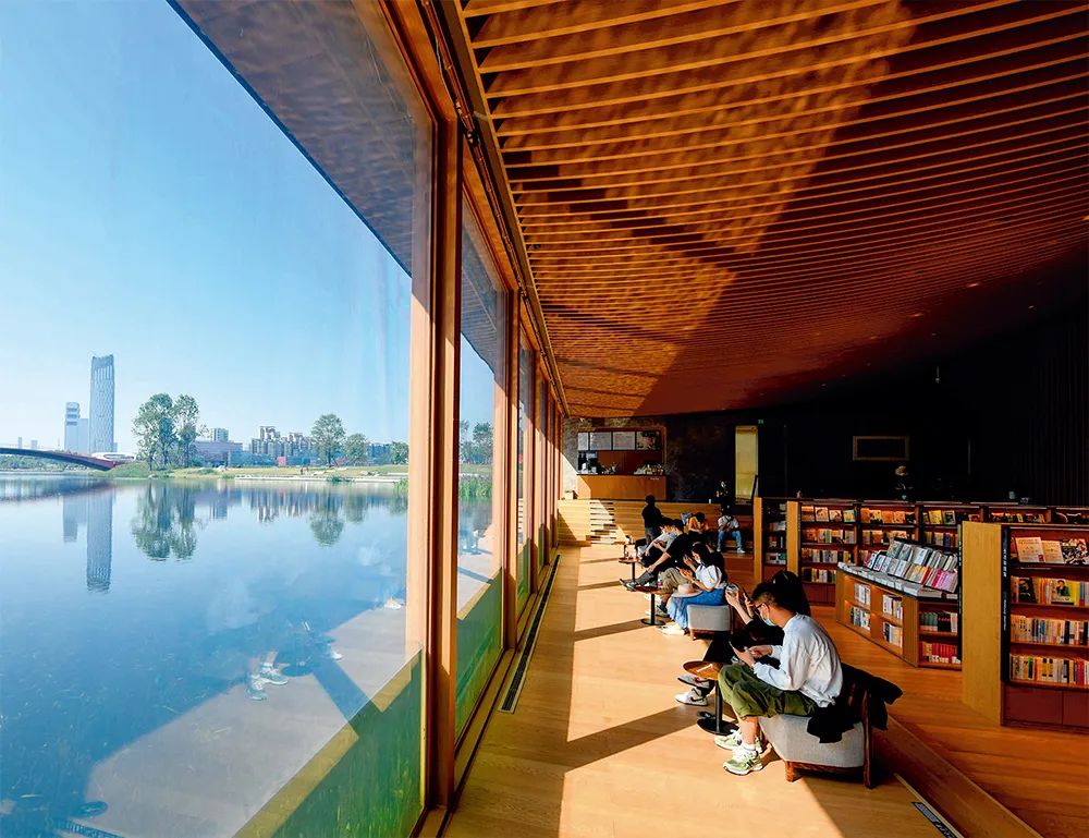 2022年4月20日,市民在成都兴隆湖畔中信书店读书 胥冰洁 摄