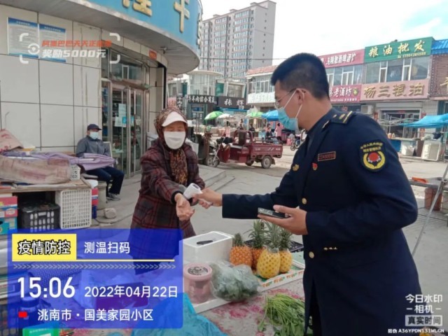 近日,吉林洮南市农贸市场外一七旬老人载着两筐大葱来到这,希望能卖个好价钱。但按照疫情防控规定,农贸市场实行限流管理,从周边来的零散人员进入市场前必须严格扫码、测温。