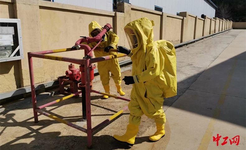 热电厂锅炉岗位员工正在进行液氨泄漏应急演练