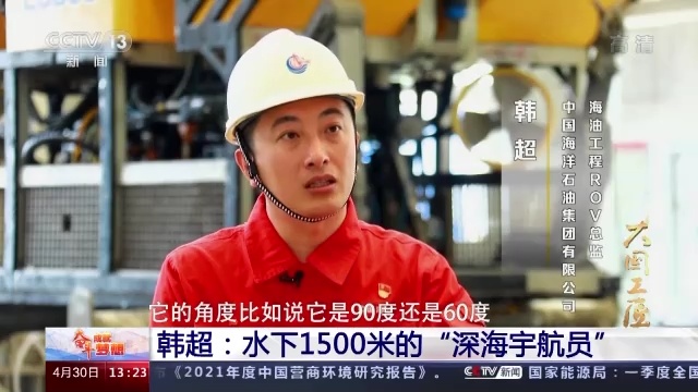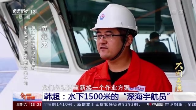 中国海洋石油集团有限公司海油工程ROV总监 韩超:我们要肩负起发展起来这个行业,(把行业)推动起来的这种重担,我见证并亲历了国家建设海洋强国的发展。这个时代需要我们,这个是我们的时代!