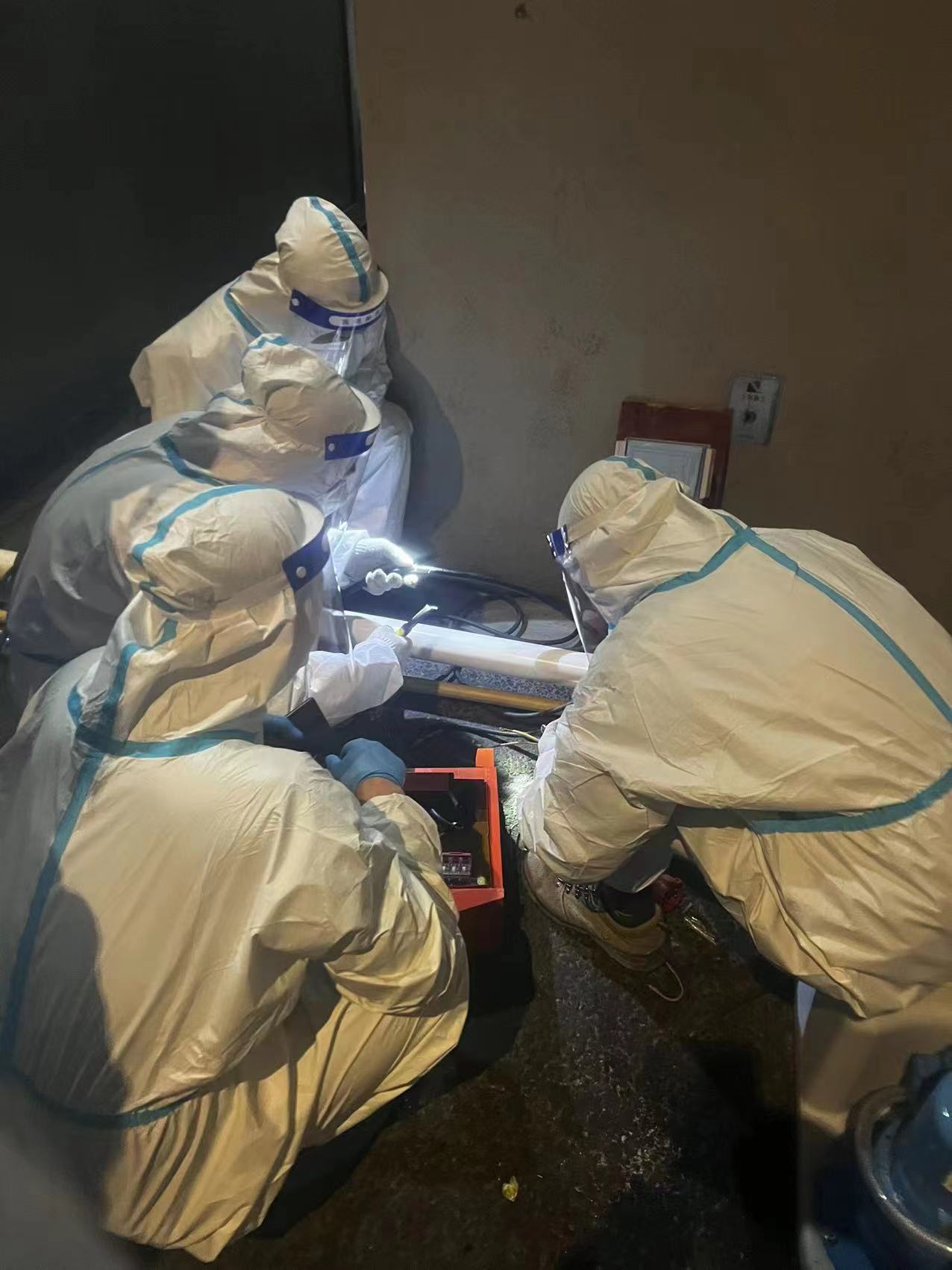 装备好和脱下装备都需要花费各半个小时,每一位维保队员每次要把自己封起来靠近6个小时,这样密不透风、汗流浃背的6小时,他们每天都要来上3次左右。