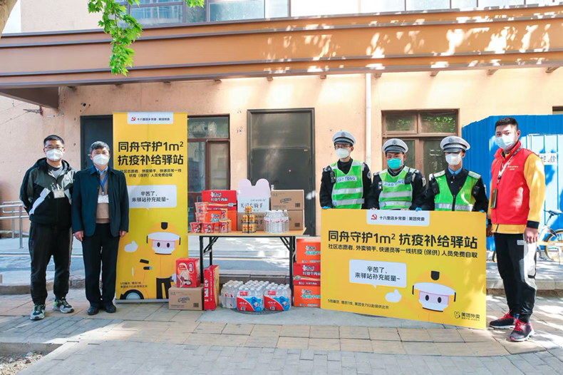 据悉,自2022年3月底起,美团外卖联合朝阳区各中高风险地区街乡共同打造骑手抗疫补给驿站,为全行业骑手及一线抗疫工作者提供免费的物资补给和关怀。骑手抗疫补给驿站已先后在六里屯、八里庄、酒仙桥等8个街乡的重点封控区落地,在抗疫行动中,实现美团党委与街乡的深度融合。