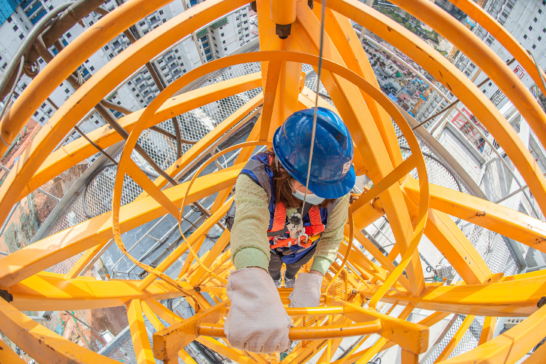 ↑2022年3月7日,在武汉市中建三局三公司某工地上,塔吊司机张晓燕爬上塔吊。1990年出生的张晓燕,一直跟着从事塔吊司机工作的丈夫学习塔吊驾驶技术,不到一个月就考取了塔吊司机证并顺利出师,北京、江西、湖北等地的许多项目上都留下了她工作的身影,至今已有9年“驾龄”。