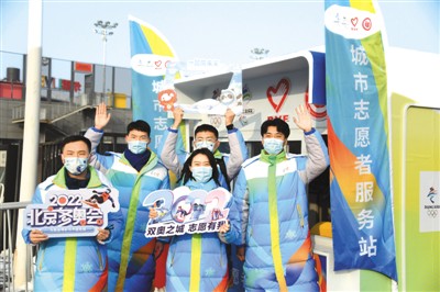 2022年1月25日,来自北京高校的2022年冬奥会和冬残奥会城市志愿者代表在五棵松体育中心附近合影。 新华社记者 任超 摄