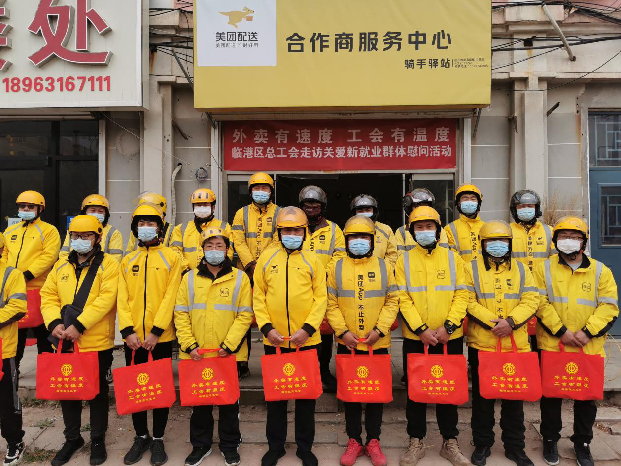日前,山东省威海市临港区总工会开展“走访关爱新就业群体慰问活动”,走访慰问外卖小哥,为他们送去“五一”国际劳动节的美好祝愿。