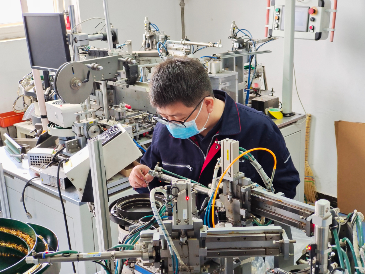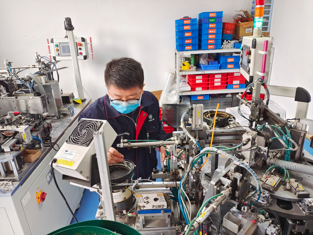 就拿生产5G通讯应用的一款射频连接器来说,他们遇到了装配工序多、测试效率低等瓶颈。“为给公司抢单挣得先机,有条件要上,没有条件也要创造条件上!”强涛和团队展开了一轮又一轮攻关,研发射频连接器自动化生产设备。