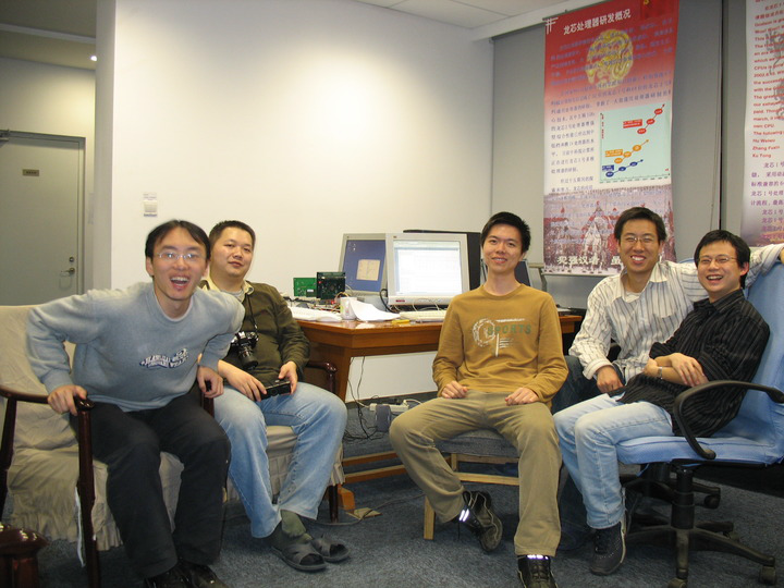2007年,陈云霁(右一)与龙芯团队成员合影。受访者供图