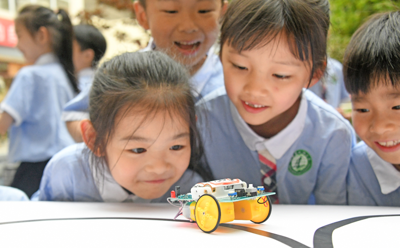 5月9日,浙江省台州市仙居县安洲小学举行第二十届科普文化艺术节,小学生通过参与文艺、书法、绘画、手工、科普、机器人等形式多样的活动,展示艺术学习成果。