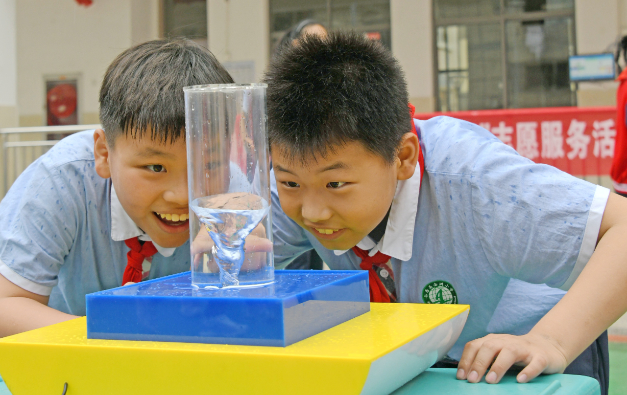 5月9日,仙居县安洲小学的学生正在参与科普小实验活动。