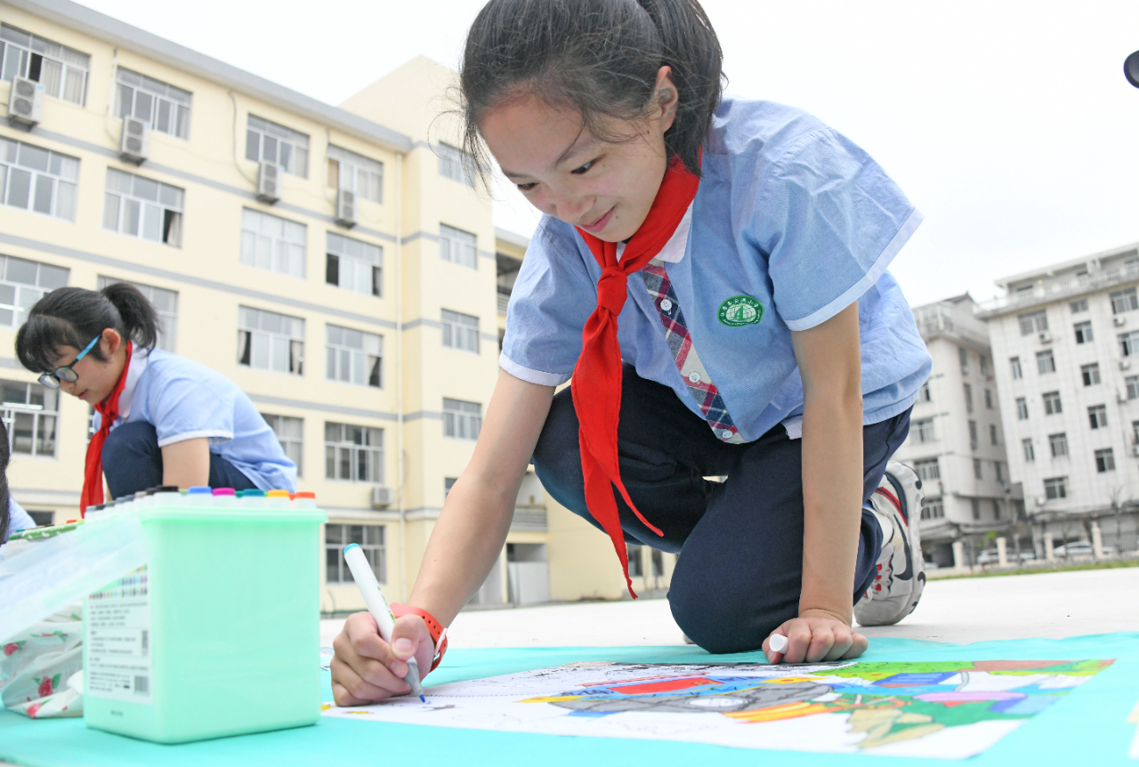 仙居县安洲小学的学生正在参加绘画活动。王华斌摄